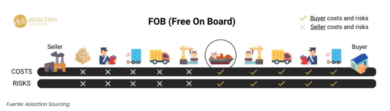 - Precio: Negociación el precio FOB con el proveedor, (que incluye los costos hasta que la mercancía esté a bordo del buque en el puerto de embarque).