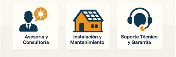 Ofrecemos soluciones integrales en energía solar que incluyen asesoría y consultoría especializada, instalación y mantenimiento de sistemas fotovoltaicos, así como soporte técnico y garantía. Acompañamos a nuestros clientes en cada etapa del proceso, asegurando eficiencia, sostenibilidad y confianza en cada proyecto.
